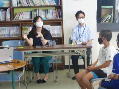 こちらは5・6年生の様子です。エアコンの入った教室で、宿題を中心に落ち着いて学習できています。その場で丸つけをしてもらえたり、分からないところが質問できたりするので、子どもたちにとって有意義な学習の場になっています。