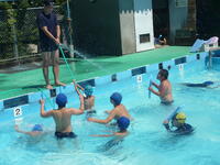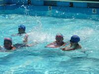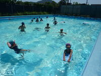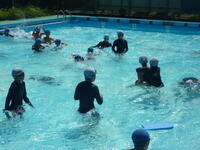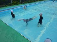 6年生は全員20m以上(本校は20mプールです)は泳げるようになり、クロール、平泳ぎともに100m以上泳げる児童が5名もいます。(在籍12名です)個々の泳力に違いがあるので、全員一律の練習ではなく、個別のめあて学習に取り組んでいます。