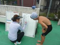 初めにそれぞれのめあてをしっかりと確認し、ペアと泳ぐコースを決めます。
