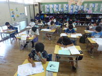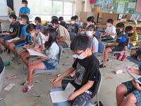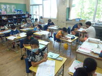 夏休みに入って一週間ほどが過ぎました。連休明けから、各学級で計画された「学習会」が始まっています。今日(7月27日)は、2年生、5年生、6年生が頑張っていました。