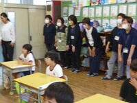 7月5日(水)、民生・児童委員、主任児童委員の方々8名が来校されました。授業参観と学校からの説明の後、子供達の地域での様子などについて、ご意見をいただきました。学校の帰りに、通学路にあるお宅を訪ね、トイレを借りた1年生がいたこと(ちゃんとお礼を言えたかな?)、登下校中の挨拶は、顔見知りになるとするようになったということ、見送られている親が挨拶をしているところは、子供も挨拶をする(逆もしかり)など、お気づきをだしていただきました。また、本校の英語の取組や2月に予定している研究発表会のことを伝えると、ぜひ、英語教育の積み重ねの成果をみてみたいとのお言葉もいただきました。