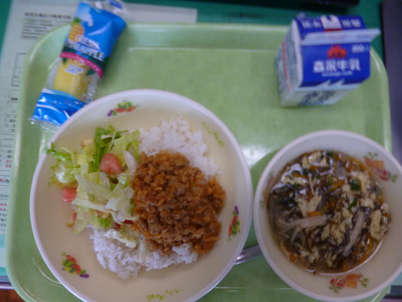 ミルクパン、牛乳、汁ビーフン、イタリアンサラダ