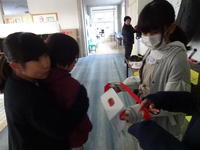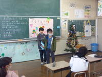 クイズやなぞなぞで楽しんだ後、くじ引きでプレゼントをもらいました。2学期頑張った子供たちへのご褒美です。プレゼントを手に記念写真も撮りました。