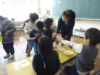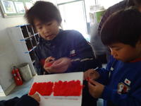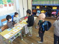 今日(12月18日)、1年生は「おみせやさん」という学習をしました。教科は国語で「ものの名まえ」の学習の一環でした。
