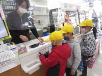 次に、小池・高山インターチェンジ近くにあるコンビニで買い物体験をしました。予算は一人110円です。思い思いに選んだ商品をレジに持っていき、それぞれがお金を支払いました。