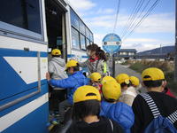 最後は、定期バスへの乗車体験です。バス会社のご配慮をいただき、一人一人整理券を取ってそれぞれが料金を支払う体験ができました。乗車時間は短かったですが、貴重な体験でした。