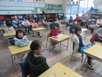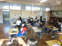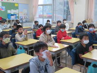 そして、コロナウイルスに感染しないように気を付けながら「家族で楽しい冬休みを」と話を終わりました。写真は、4年生と3年生の様子です。