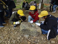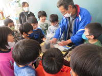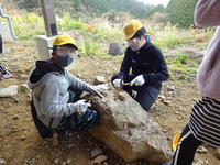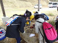 係の方の説明をしっかり聞いて作業を始めました。恐竜の化石は見つかりませんでしたが、全員が貝の化石を見つけることができました。