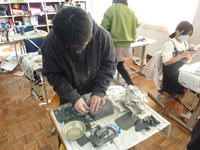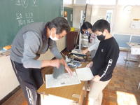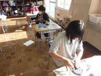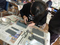 写真は3年生の様子です。空き缶を芯にして成形する方法を教えていただいた後、思い思いに作成に取り組みました。個別のアドバイスもいただくことができ、良い作品ができそうです。