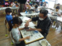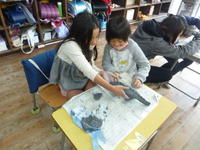 こちらは4年生の様子です。4年生は写真を撮りに行ったときにはすでにみんな作り始めていました。ご指導をしていただくのも4回目なので、慣れた様子で粘土をこね、作成していました。