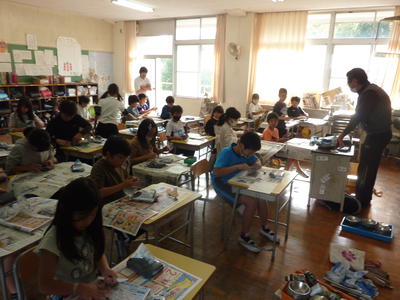 こちらは6年生の様子です。さすが6年生です。確認程度の説明で、早速作り始めていました。作りながら、個別にアドバイスをいただくことができたようです。上学年らしい素晴らしい作品ができていました。