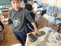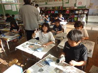 今日(12月8日)は、1年生と4年生の陶芸教室でした。まずは、1年生の様子です。