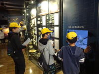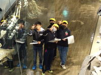 次は恐竜博物館の見学です。こちらでも係の方からていねいに説明をしていただくことができました。その後は、思い思いに館内を見学しました。満足げなポーズも見られているようです。