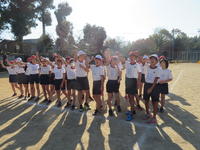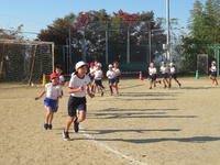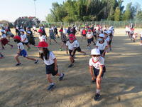 まずは開会式です。「しっかりとめあてを持って頑張るように」と校長先生からの話があった後、準備体操をしました。競技は、低(1・2年)中(3・4年)高(5・6年)ごとに行いました。