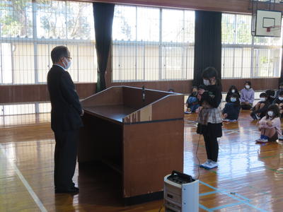 写真は就任式の様子です。週に3~4日勤務をされ、3年生から6年生の理科の授業を担当されます。よろしくお願いいたします。
