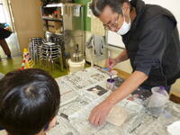 1月12日(木)と13日(金)、高田先生の指導をうけながら、2学期に作って素焼きした楽焼に「色つけ」をしました。思い思いの色をつけ、その上から高田先生が釉薬をかぶせてくださいました。この後は、「本焼き」をされ、次の戻ってくるときは、完成された芸術作品になっているはず。楽しみです。