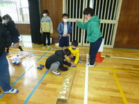 2月22日(水)、今日の1時間目、体育館で、3年生主催の「おもちゃショー」が開かれました。理科の授業で学習した、ゴムや風、電気、磁石、電気の力を使ったオリジナルおもちゃを3年生が作成し、それを使って遊ぶおもちゃショーに、2年生を招待しました。2年生は大喜び、おおはしゃぎ。私も、ゴムでっぽうとゴムカーで遊び、メダルと手裏剣をもらいました(^▽^)/ 理科担当の山田先生によると、3年生がとてもリーダーシップを発揮して、2年生を楽しませていたとのこと。誰かのために、相手意識は大事ですね。やったね、3年生。