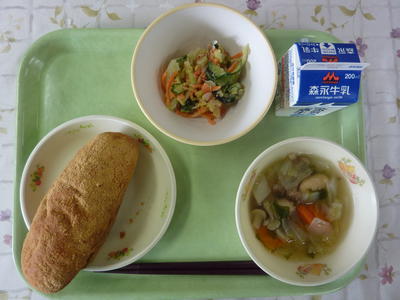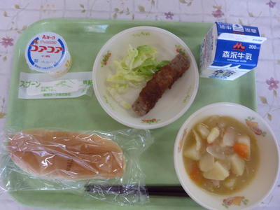 揚げパン、冬野菜のポトフ、御船川とツナのサラダ、牛乳
