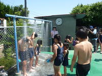 今日(6/13)の3校時、全校でプール開きを行いました。絶好の天気で子供たちも大喜びでした。