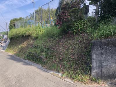 その後、校門で他の班の子供たちを迎えていると、校門付近の土手が写真のようにきれいに草切りされていることに気付きました。