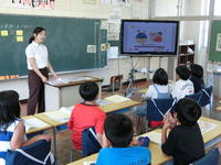 こちらは、3年生と4年生です。3年生は元気いっぱいです。4年生はICTを活用した授業です。