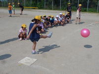 昨日(6/20)、児童会の主催で縦割り班対抗のキックベースボール大会が行われました。