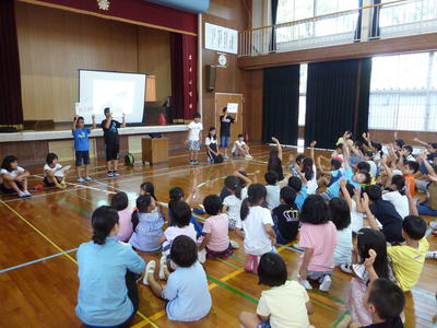 最後に、童話を一話、実際に話していただきました。みんな引き込まれるように童話の世界に浸っていました。本のプレゼントもいただき、校長先生と一緒にみんなでお礼を伝えて会を終わりました。