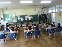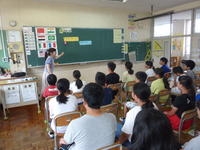 本校は、本年度から文部科学省の「教育課程特例校」の指定を受け、英語科を特設しています。通常の外国語科や外国語活動よりも時数を多くし、低学年でも英語の授業を設定しています。その中で、教師は英語科の授業充実について研究を進めているところです。