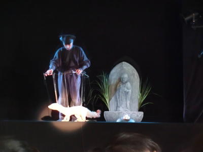 上演いただいた演目は「まほろばのこだま」。 せりふが無い、人形の動きだけで表現される劇でした。