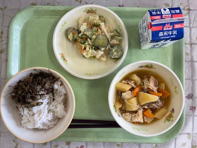 麦ごはん、たんたん風春雨スープ、きびなごサクサク揚げ(2ケ)、切干大根のサラダ