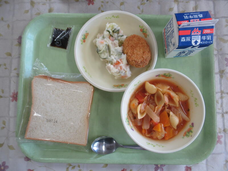セルフサンドイッチ(食パン)、ミネストローネ、ポテトサラダ、