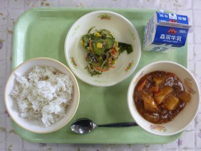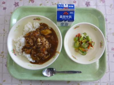 ビタミンAたっぷりカレー、かみかみサラダ、牛乳