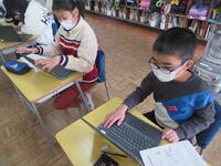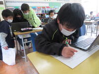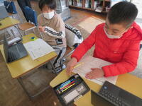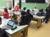 6年生は今日(2月21日)、理科でプログラム学習に取り組みました。