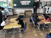 今日(2月22日)は、週に一回、低学年(1・2年生)の英語の授業がある日です。ALTのクリス先生が来校される日に合わせて低学年の英語の授業は行われます。写真は1年生の様子です。