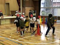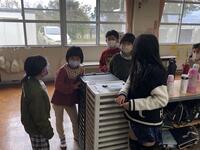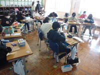 今日(3月1日)はあいにくの雨。3年生の体育は体育館でいろいろなゲームを楽しんでいました。指導しているのは4年生担任の永嶺先生です。この間、4年生は3年担任の赤星先生と図工の学習をしています。