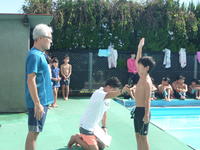 それそれの発表の後は、みんなで三列になって大波をつくりました。できた大波に乗ってみんなで楽しく遊び今年の水泳の授業を締めくくりました。