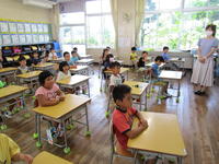 上の写真は1年生と2年生の様子です。しっかりと話を聞くことができています。