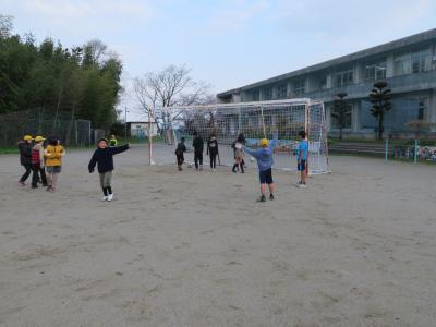 日曜日に、PTAのお父さん方が、新しいサッカーゴールネットを取り付けてくださいました。