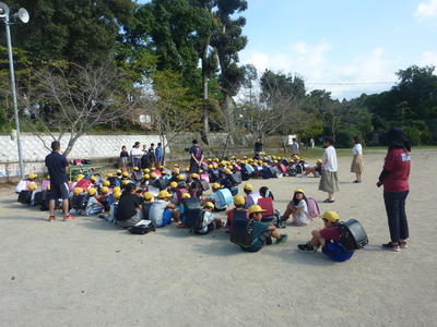 今日(9/18)は、登校班ごとに運動場に集合して一斉下校を行いました。