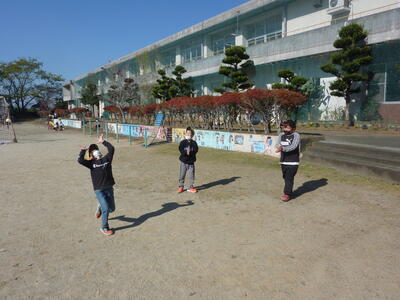 子どもたちは大喜びで遊んでいました。とても高く飛ぶ竹とんぼに「先生、高く飛んだ!」と歓声をあげていました。老人会の方々と一緒に遊ぶことはできませんでしたが、子どもたちを思っていただくお気持ちは子どもたちに伝わったようです。