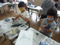 今日(12月8日)は、1年生と4年生の陶芸教室でした。まずは、1年生の様子です。