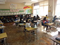 写真では伝わりにくいですが、デジタル教材の歌に合わせて練習をしている様子です。曲に乗せて覚えることができるので、覚えやすいようです。