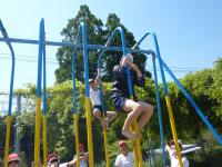 登り棒では、思い思いの登り方でてっぺんを目指しました。てっぺんまで登れた子供も多くいましたが、登れなくて悔しがっている子供もいました。しかし、みんな一生懸命に挑戦できていました。