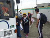 出発式を行った後、みんな笑顔でバスに乗り出発していきました。