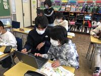 今日(3月3日)、4年生は英語で「一日を英語で表す」学習に取り組んでいました。