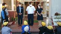 今日(10月25日)の朝、児童会執行部のメンバーがあいさつ運動に取り組んでくれました。今年度になって、地域の方々からあいさつが良くなってきたとお褒めの言葉をいただいていましたが、コロナ禍の中、あいさつ運動はできていませんでした。今年度になって初めての取組です。