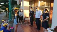 裏門側の様子です。あいさつが良かった班は表彰を受けることができるので、どの班も大きな声であいさつを頑張っていました。あいさつ運動は明日も行われます。