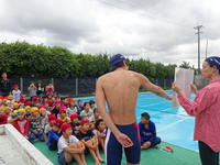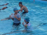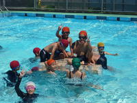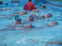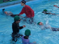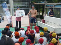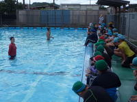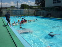 こちらは高学年の様子です。低学年と同様の学習内容でしたが、さすが高学年です。ペットボトルを使って背浮きもなかなか上手でした。子供たちは貴重な体験として学習することができたようです。