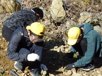 今日(21日)は6年生が「御船町恐竜博物館」で学習した後、「みふね化石ひろば」で学芸員の富澤さんから指導を受けながら、化石の発掘に挑戦しました。