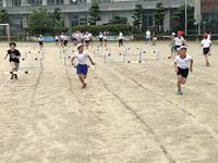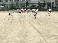 5・6年生は体育の授業を合同で行っており、現在は、ハードル走の学習に取り組んでいます。写真は今日(6月15日)の授業の様子です。
